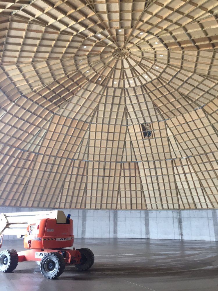 The LD-44 is a bespoke, purpose-built salt storage facility that combines functionality with aesthetics to provide a pleasing yet practical structure for long-term usage. Salt is a very corrosive material; hence, no steel was allowed in the salt barn. The brief from the client was therefore to use timber and also to create a simple dome with clean lines and striking visuals.